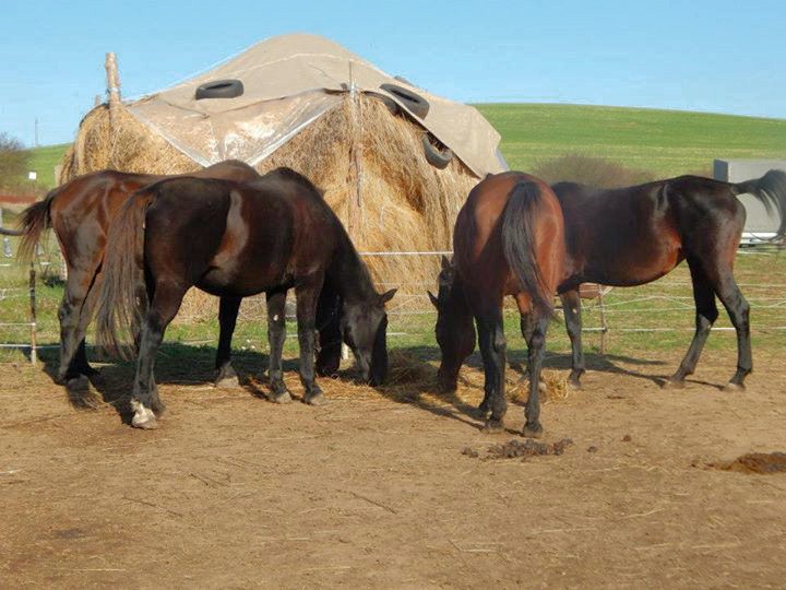 Napi 3x takarmányozás (abrak, széna, lucerna), ill. napközben legelőre kihelyezés